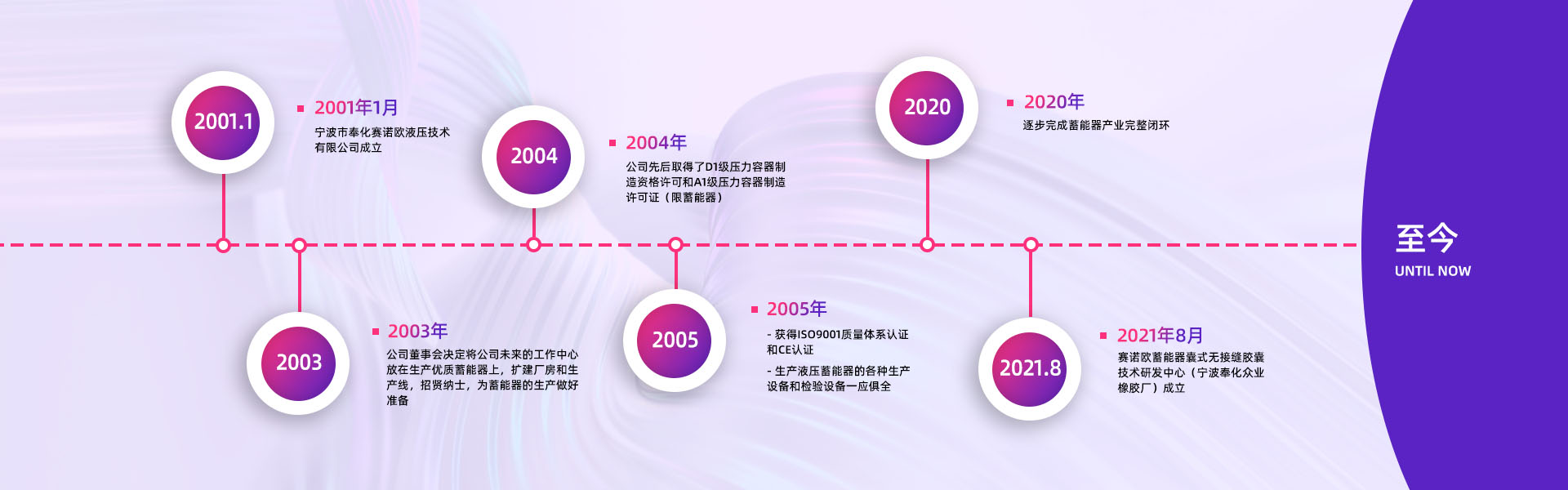 寧波市奉化賽諾歐液壓技術(shù)有限公司創(chuàng)建于2001年7月,是國(guó)內(nèi)優(yōu)秀的液壓蓄能器專業(yè)制造公司,制造設(shè)備齊全,檢測(cè)手段完善。同時(shí)也是探索蓄能器囊式結(jié)構(gòu)一體化的科研創(chuàng)新型企業(yè)。      2001年,公司董事會(huì)決定將公司未來(lái)的工作重心放在生產(chǎn)優(yōu)質(zhì)蓄能器上。公司一方面著手于廠房擴(kuò)建和生···